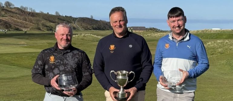 With Dave replaced by Andrew for the inter-county final due to prior arrangements, the Dunstanburgh team dominated the early exchanges and raced to a 4up lead after nine holes on the Northumberland coast. They did not surrender the lead on the second loop and completed a 4&2 victory to lift the trophy for the time in their home club’s history.